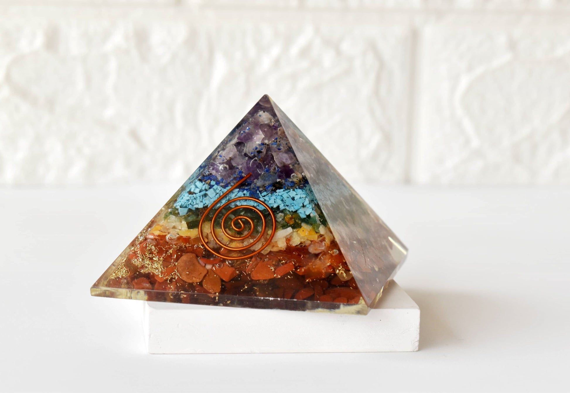 - Bring balance and calm into your life with this special 2-3 inch 7 Chakra Orgone pyramid today.