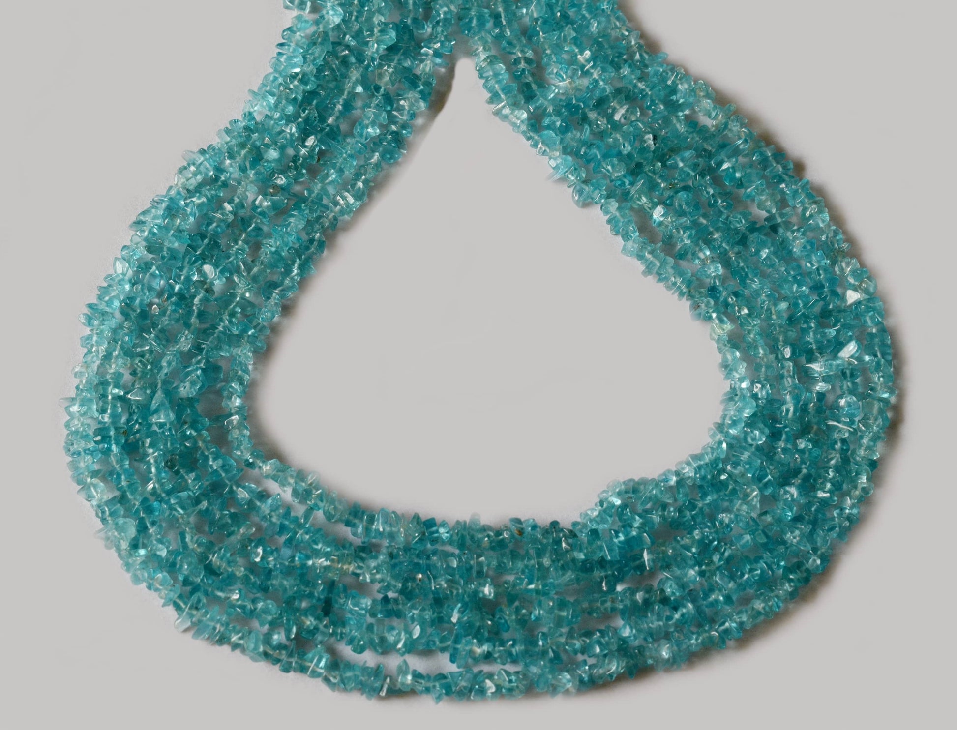 - Featuring a tranquil turquoise blue tone, these 32 inches Apatite Uncut Chip Beads have an almost ethereal glow.