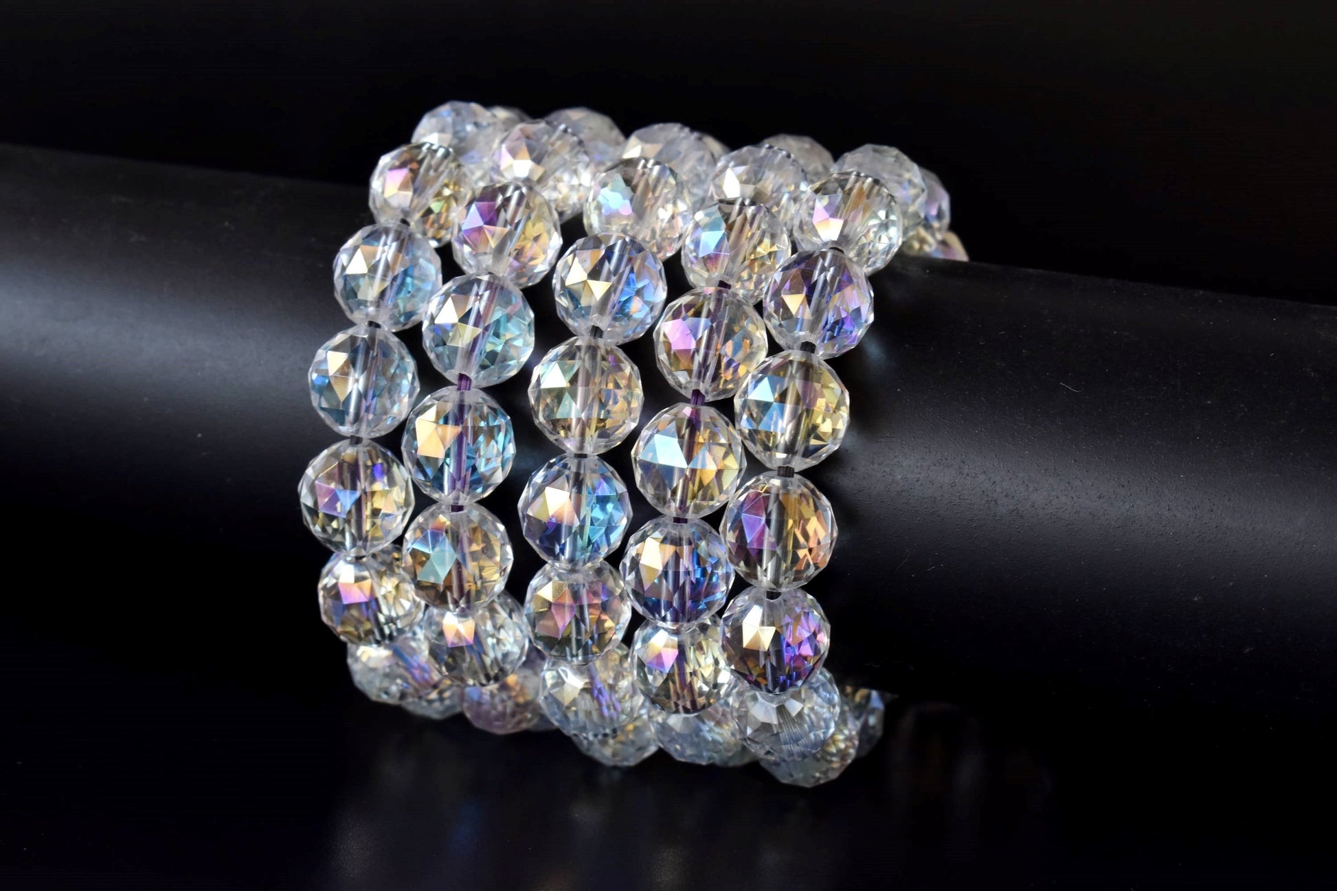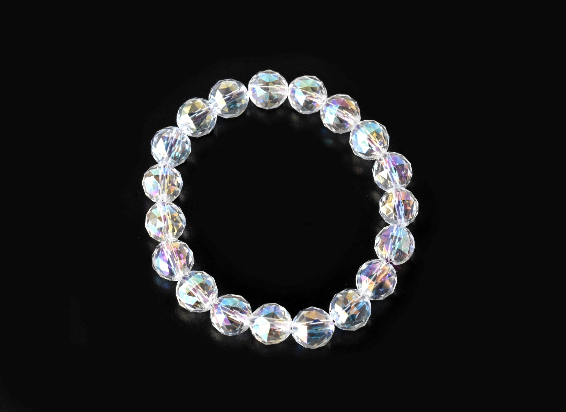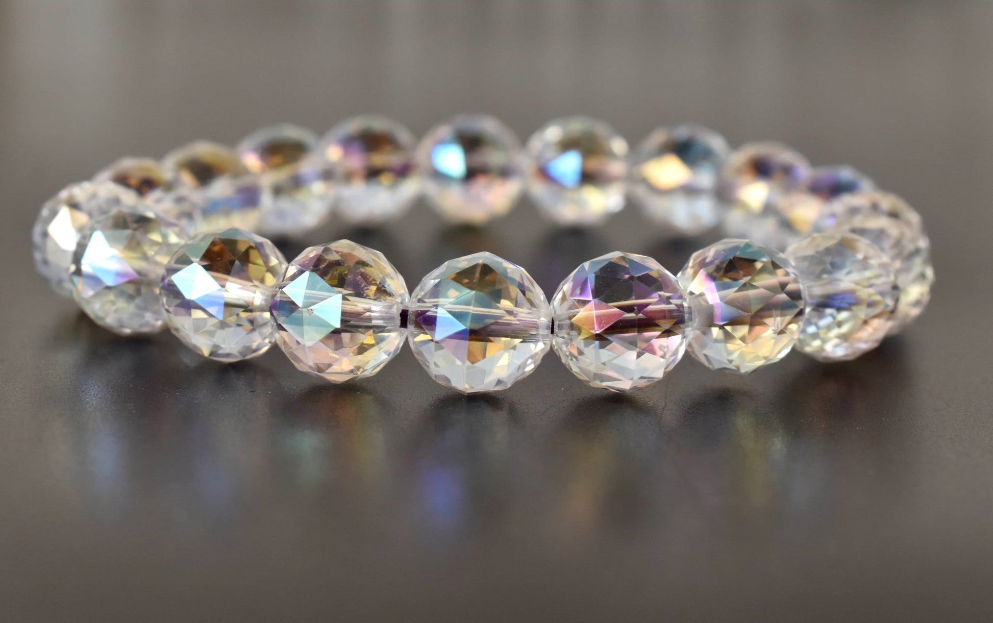 Aura Quartz Faceted Rainbow Moonstone Bracelet, Round Beaded Bracelet
