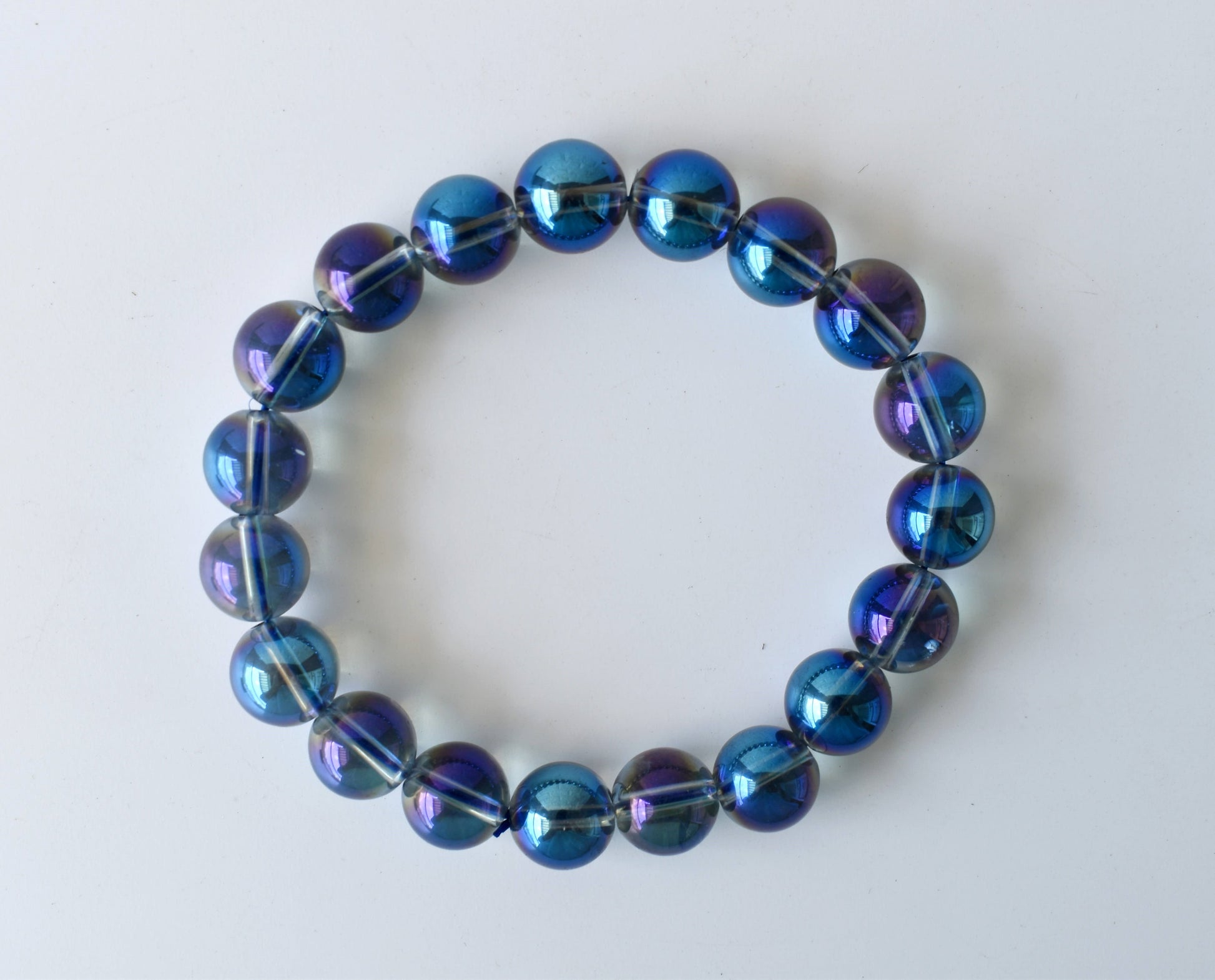 Aura Quartz Titanium Bracelet, Round Beaded Bracelet.