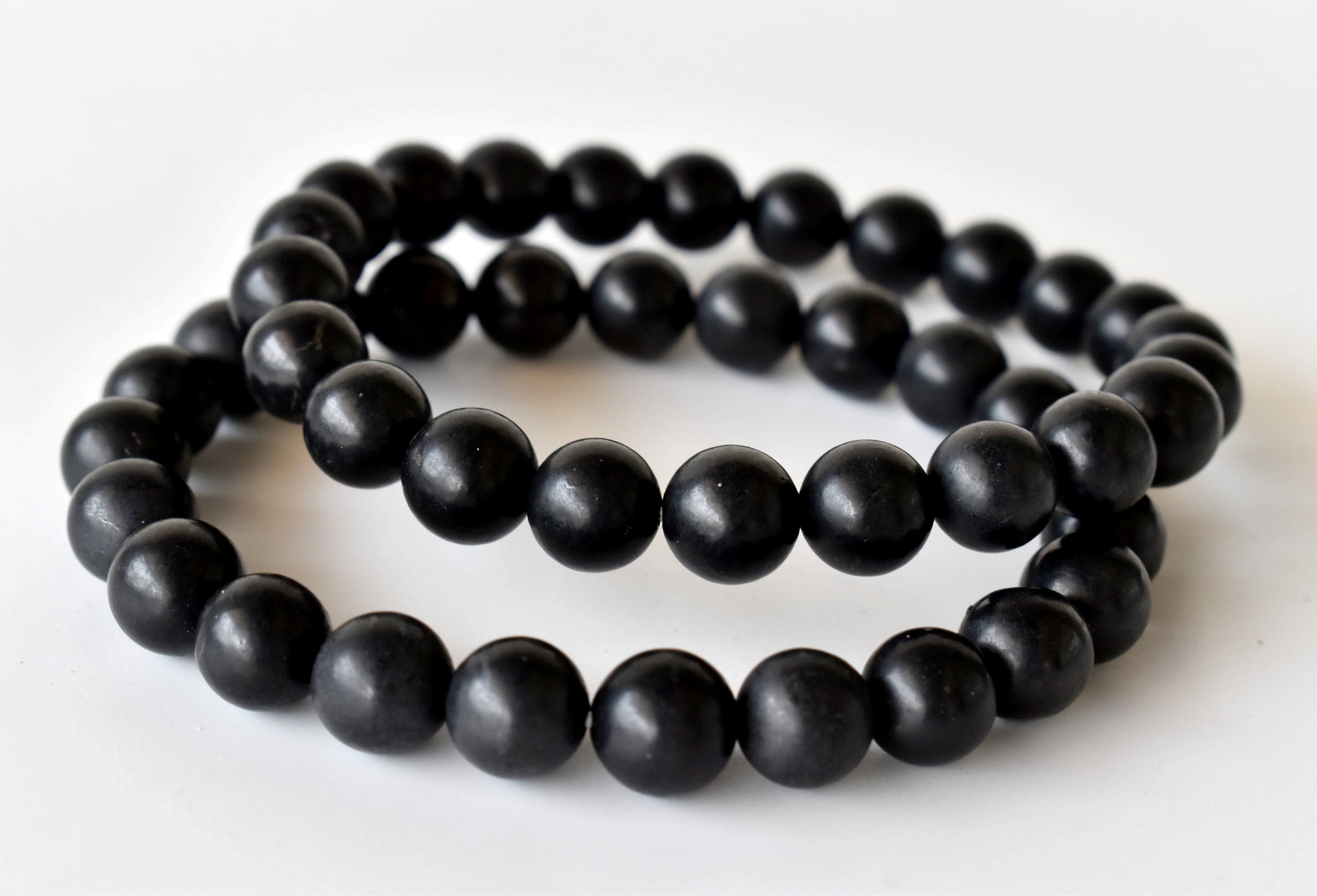 Black Shungite Bracelet, Round Beaded Crystal Bracelet