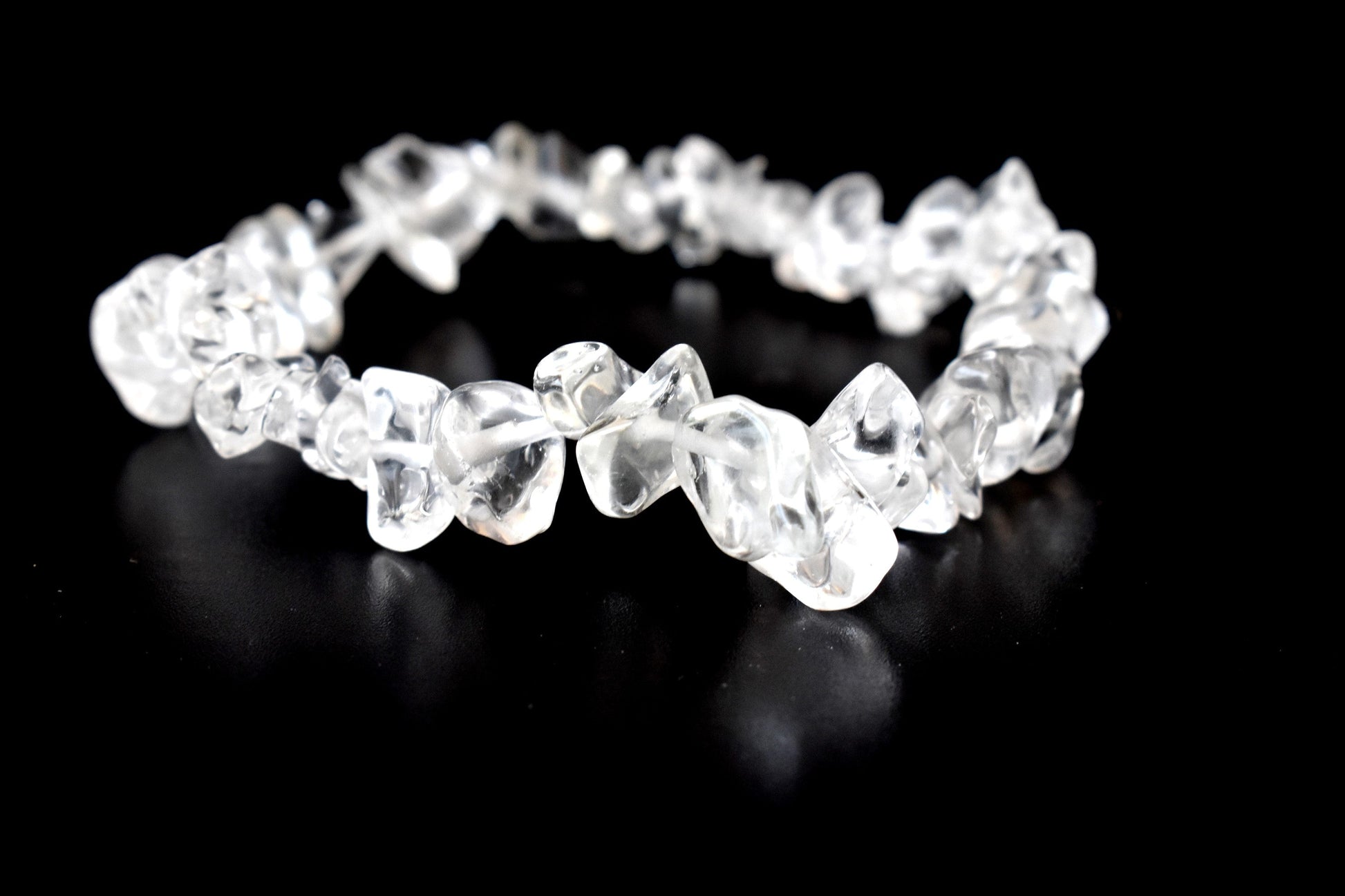 These Crystal Quartz Chip Bracelets are made from natural, raw crystal quartz chips that have been strung together to create a beautiful and unique piece of jewelry. Crystal quartz is known for its healing properties and is said to amplify energy and promote clarity of thought.