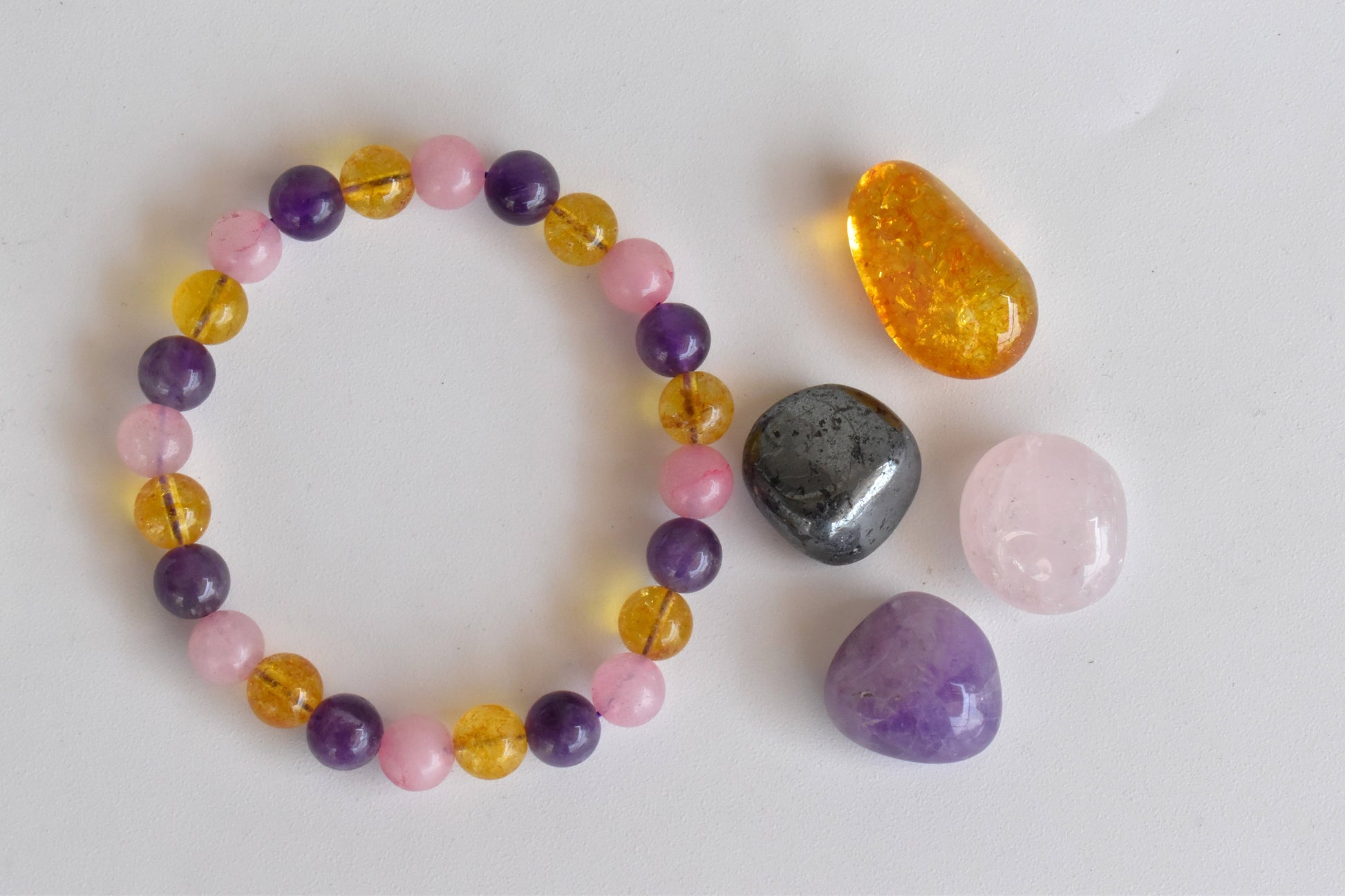 Amethyst : offers clarity and relief from emotional pain, supporting inner peace and transformation.