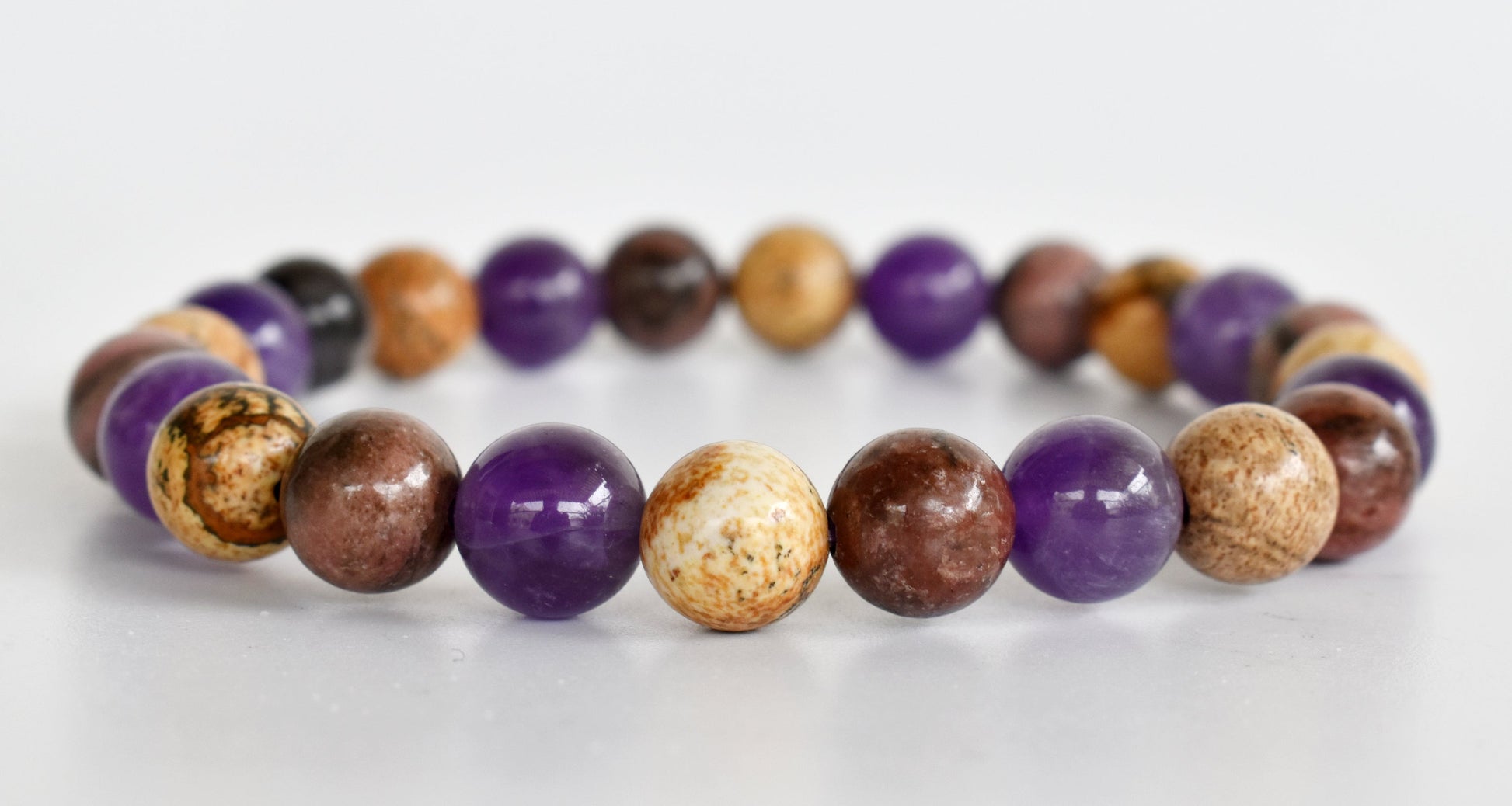 - Gemstones : Picture Jasper, Amethyst, Rhodonite.