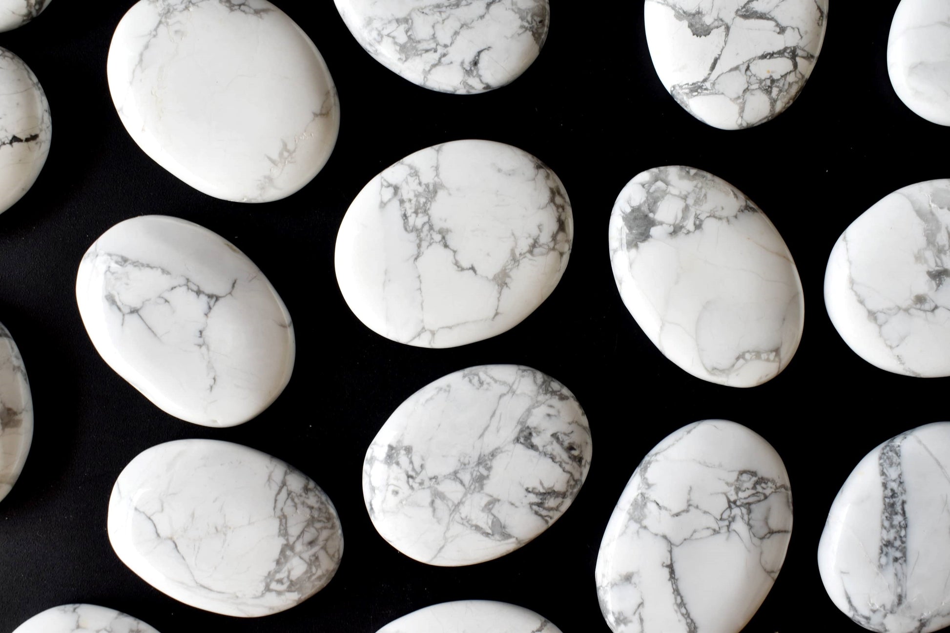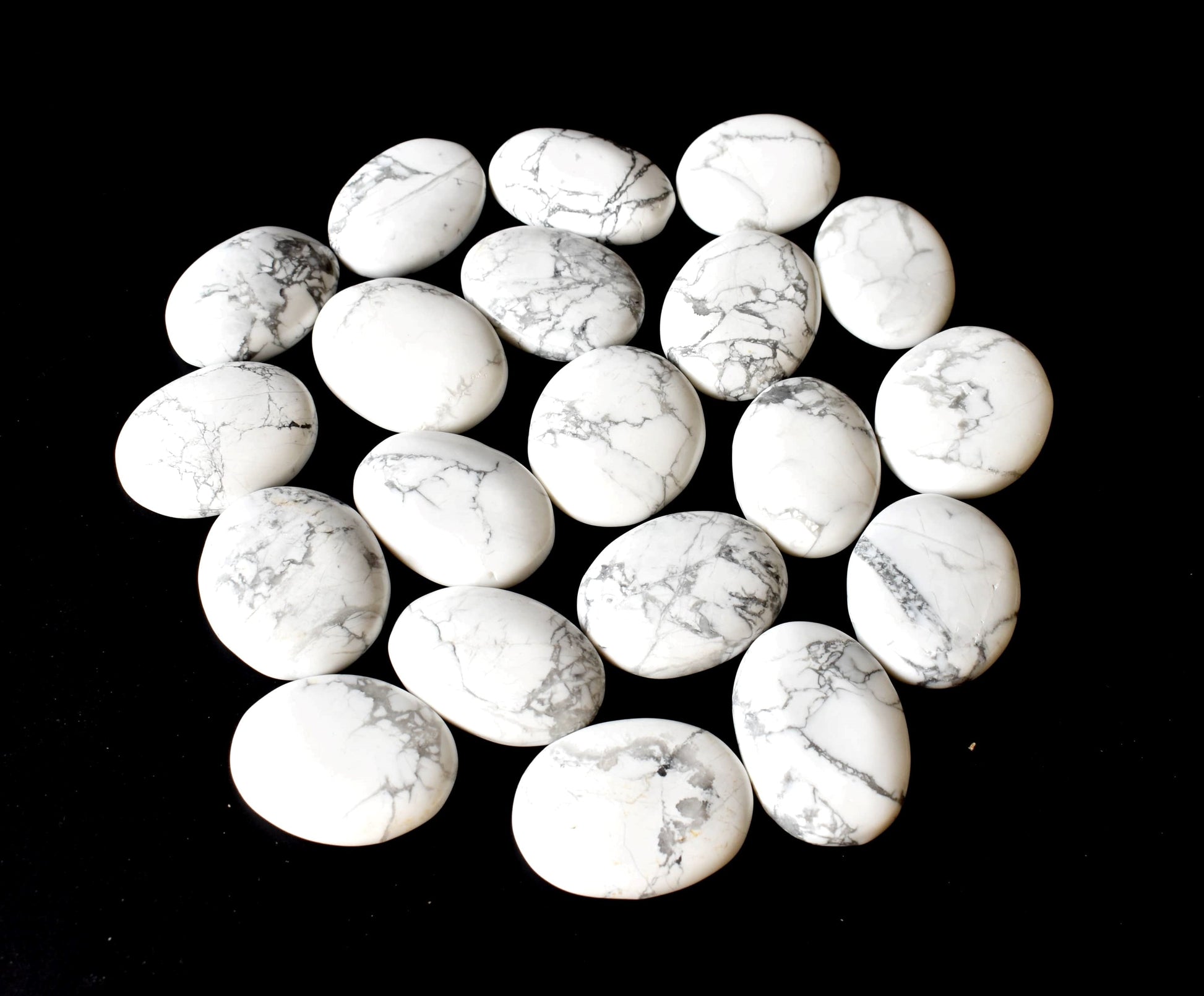 Polished Hand Carved Oval Shaped Howlite Worry Stones, thumb Stones, Pocket Stones