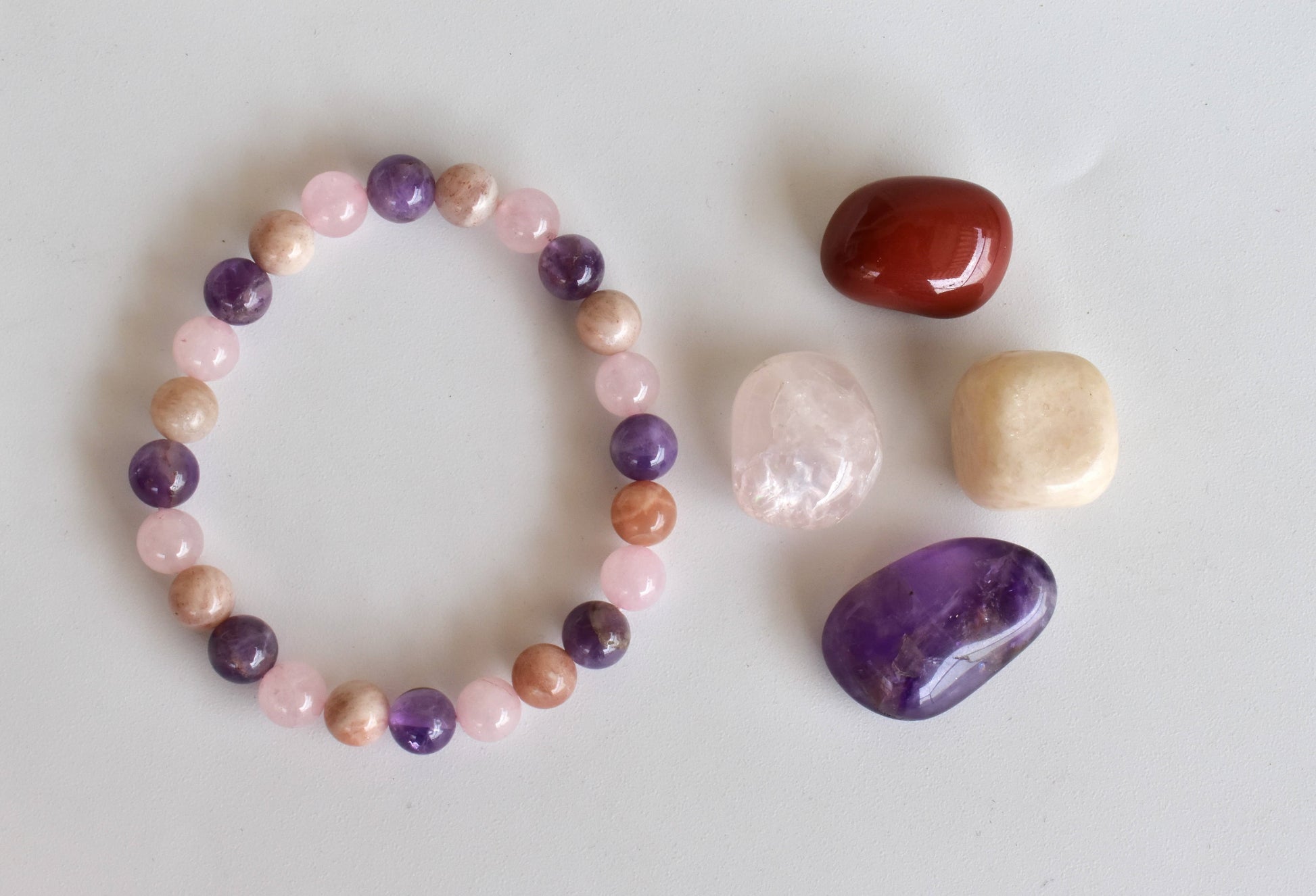 ◾Gemstones : Rose Quartz, Amethyst, Peach Moonstone, Red Jasper
