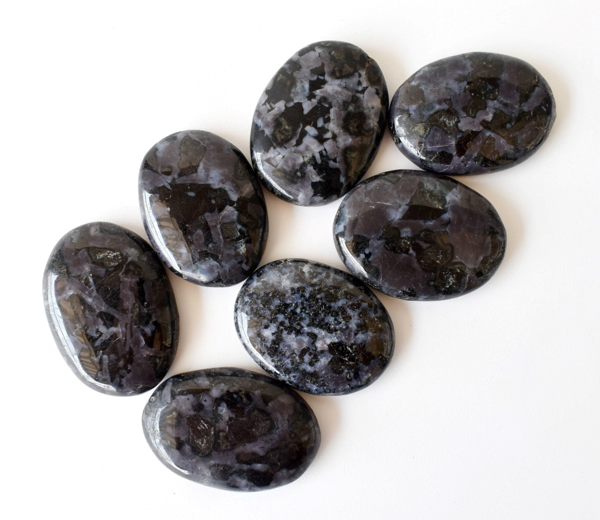 Polished Hand Carved Oval Shaped Larvikite Worry Stones, thumb Stones, Pocket Stones