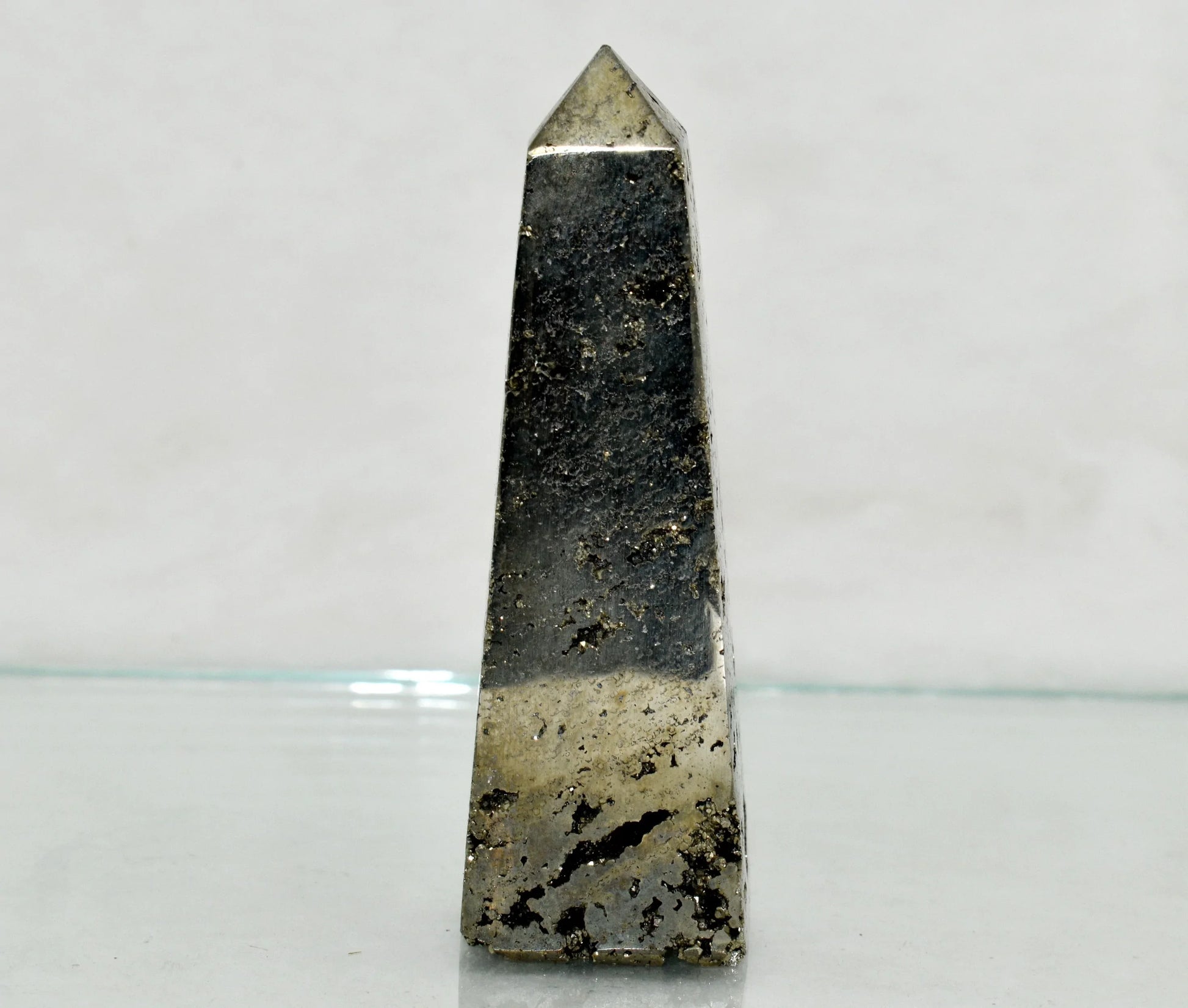 You will receive ONE (1) Pyrite Druzy Obelisk Point