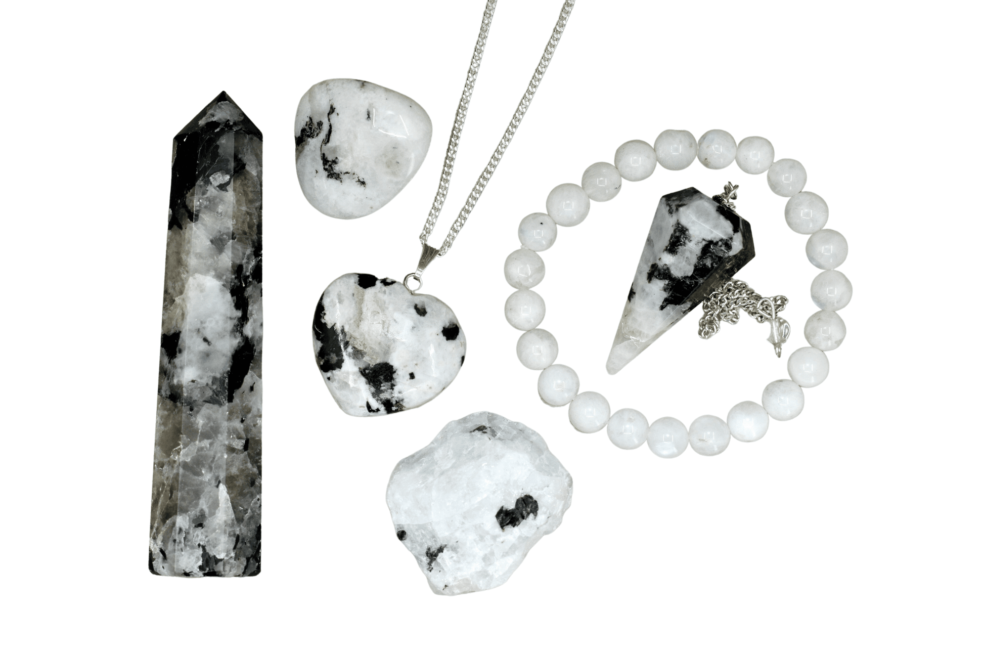 This Rainbow Moonstone crystal kit works to align all chakras and balance all energies.