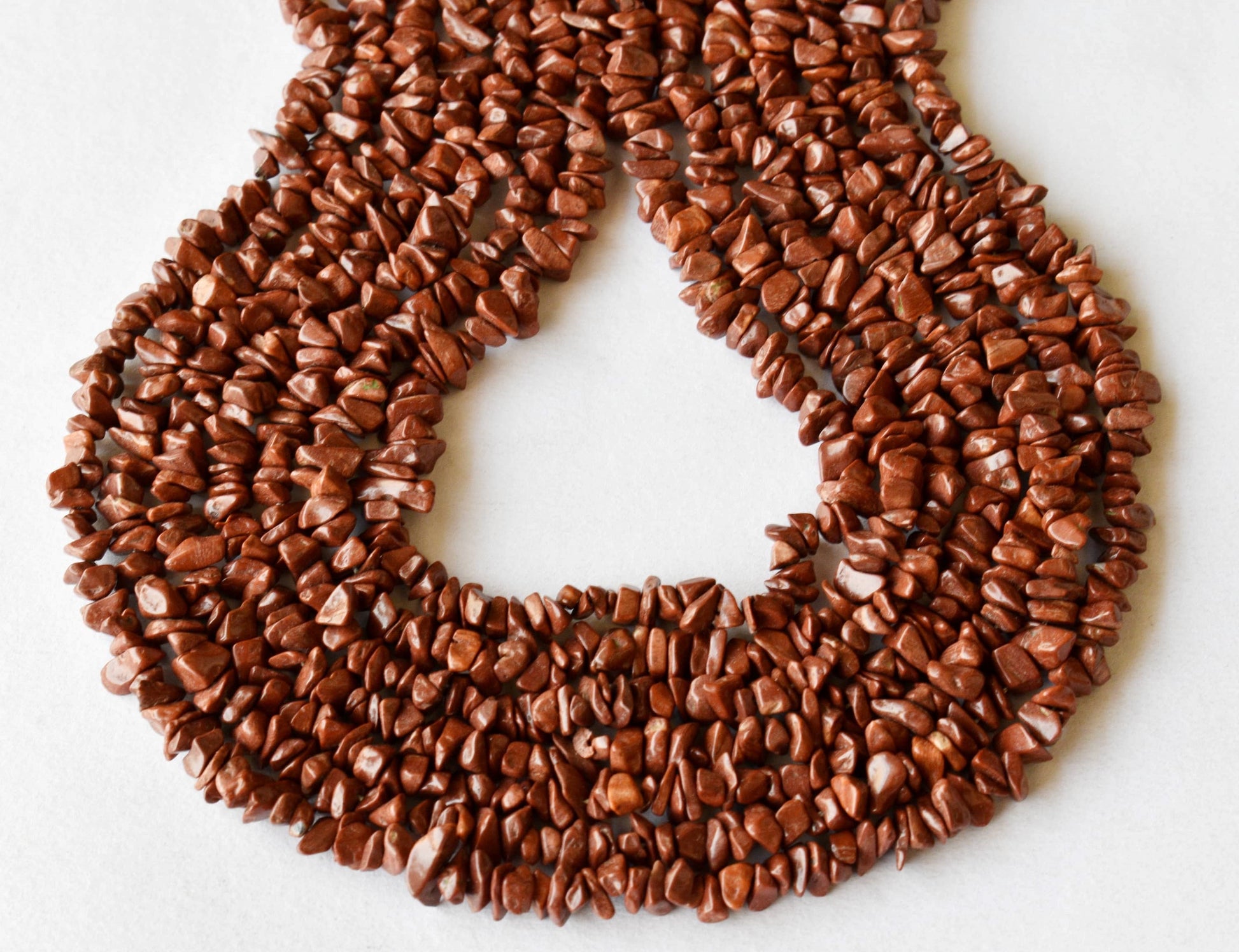 - These natural red jasper uncut chip beads are the perfect size for necklaces, bracelets, anklets, keychains, and more.
