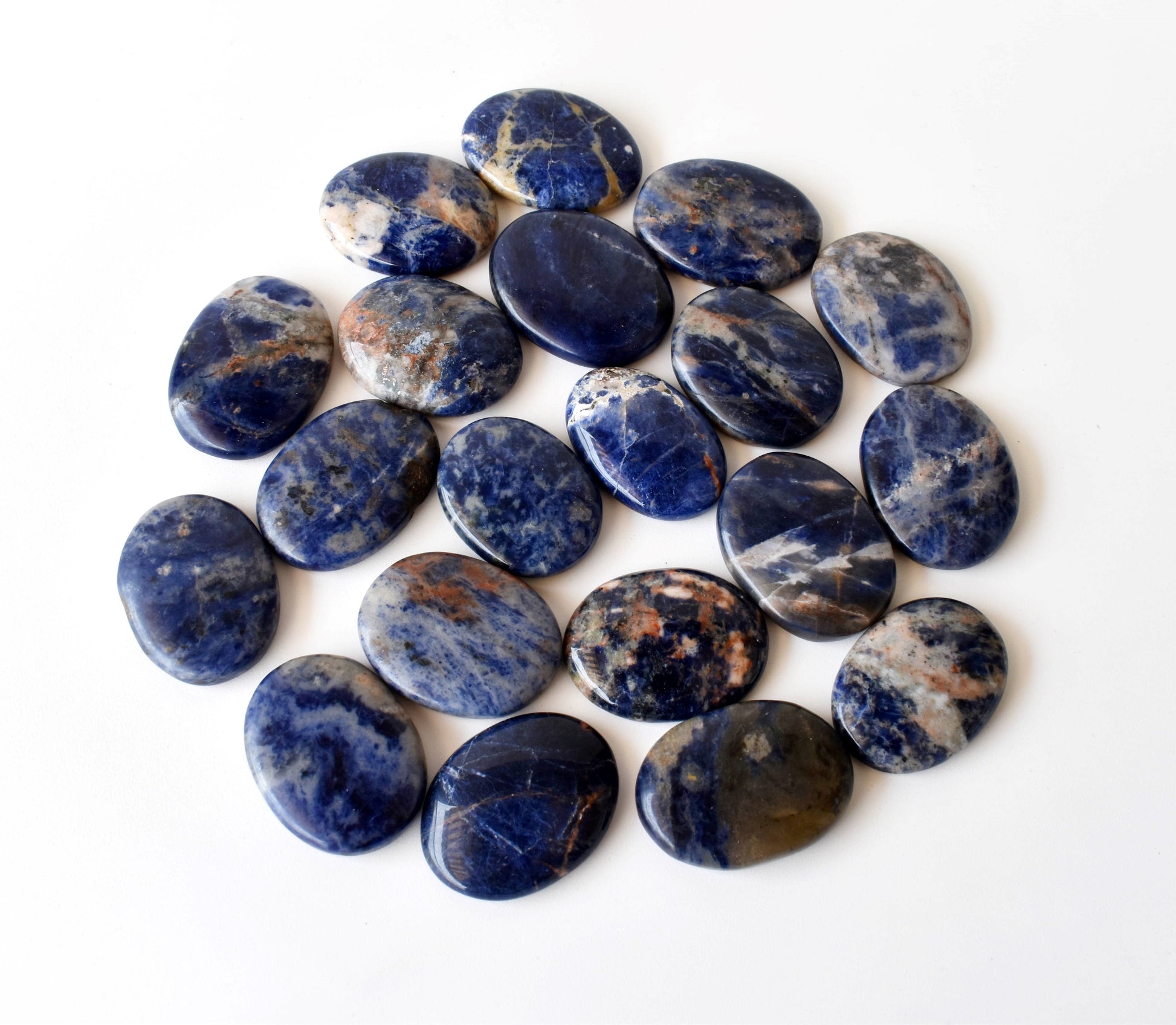 Polished Hand Carved Oval Shaped Sodalite Worry Stones, thumb Stones, Pocket Stones